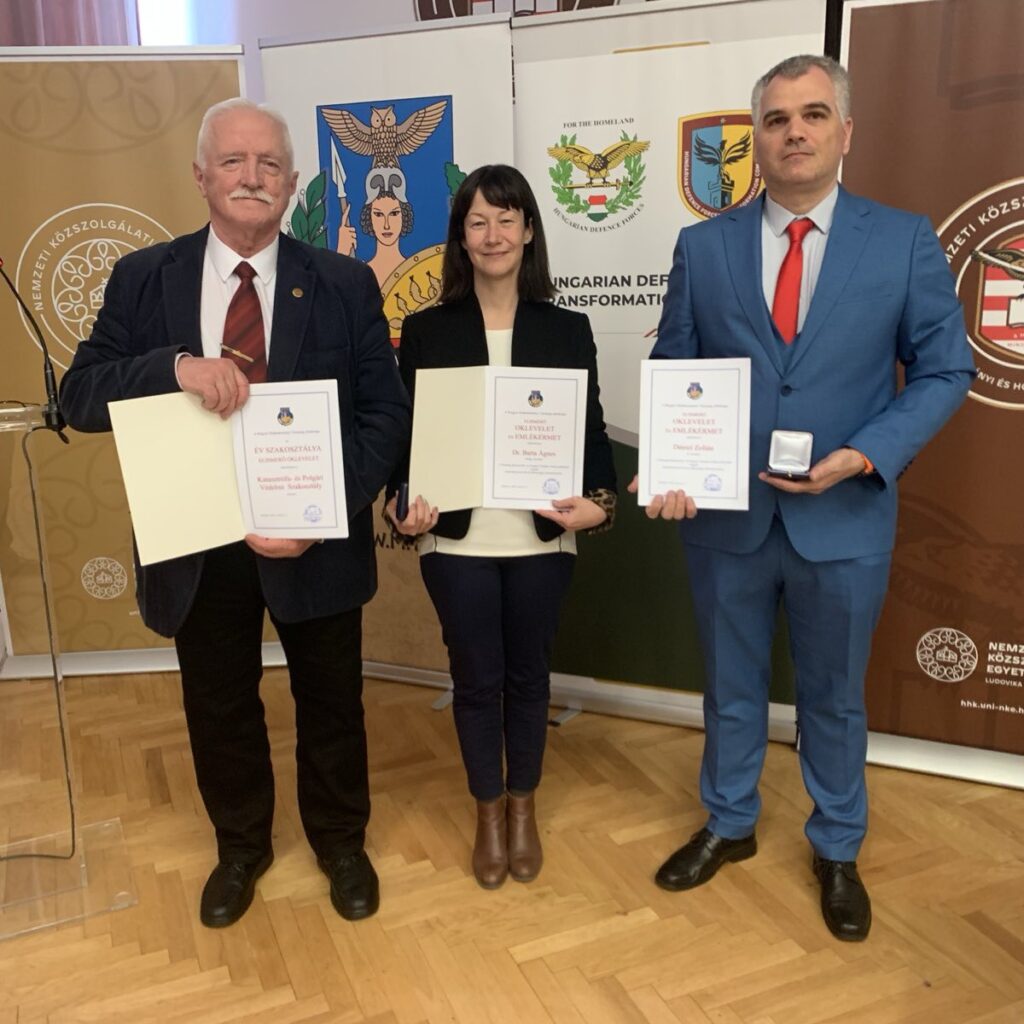Prof. Dr. Padányi József ny. vezérőrnagy úr a „Hadtudomány szolgálatáért” emlékérmet és oklevelet adományozott Dániel Zoltánnak, a Magyar Hadtudományi Társaság katasztrófa- és polgári védelmi szakosztályában végzett tudományszervezői tevékenysége elismeréseként.